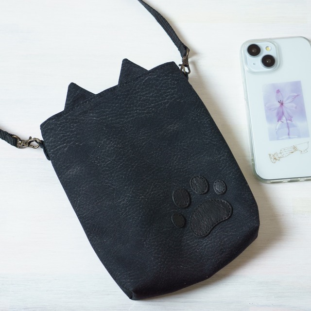 クロ・巾着スマホショルダー・猫耳