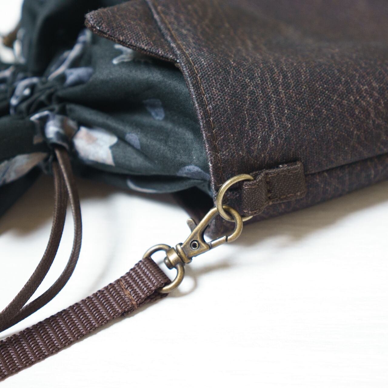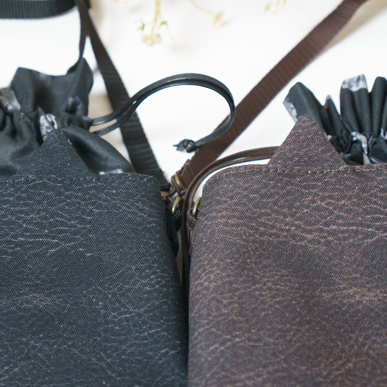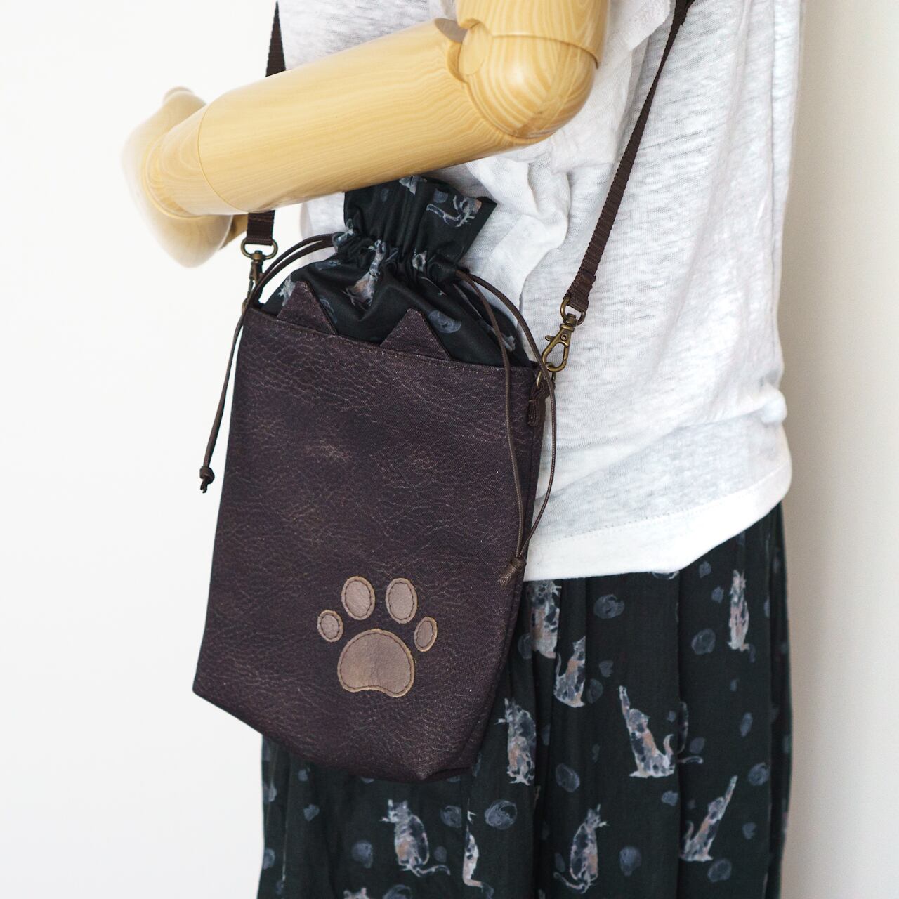 猫耳と肉球のある巾着ポシェットタイプのスマホショルダー
