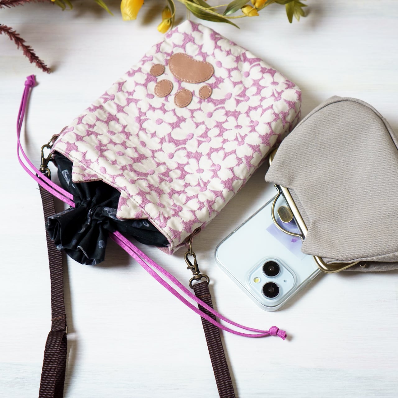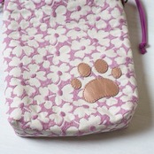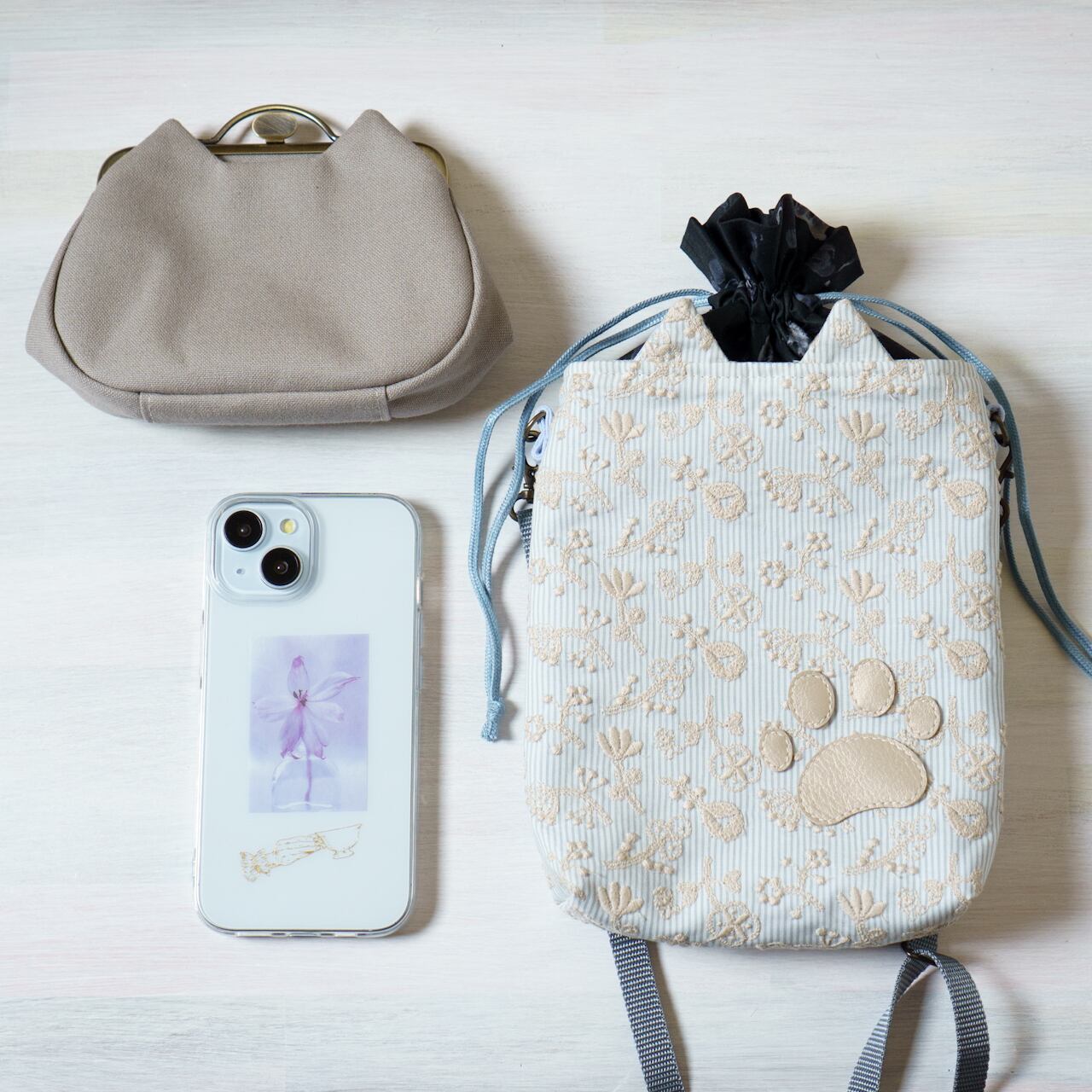 猫耳と肉球のある巾着ポシェットタイプのスマホショルダー
