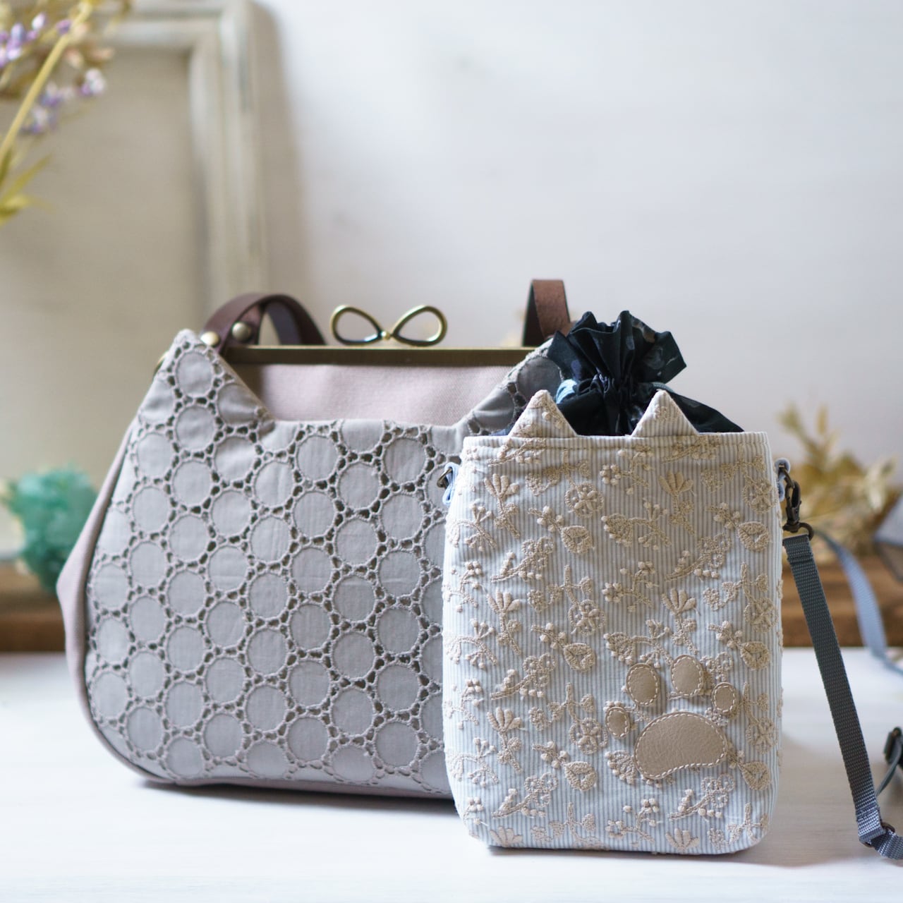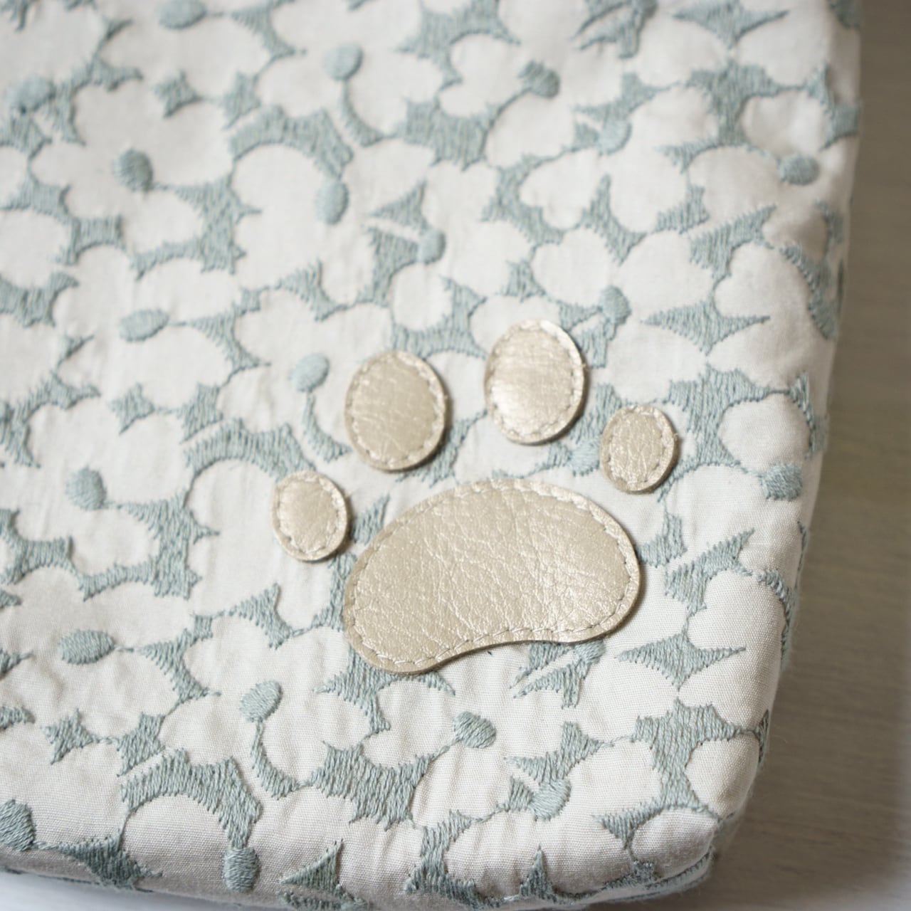 ポケット部分・・・花の刺繍生地(ベージュグレー系にグレーグリーン)