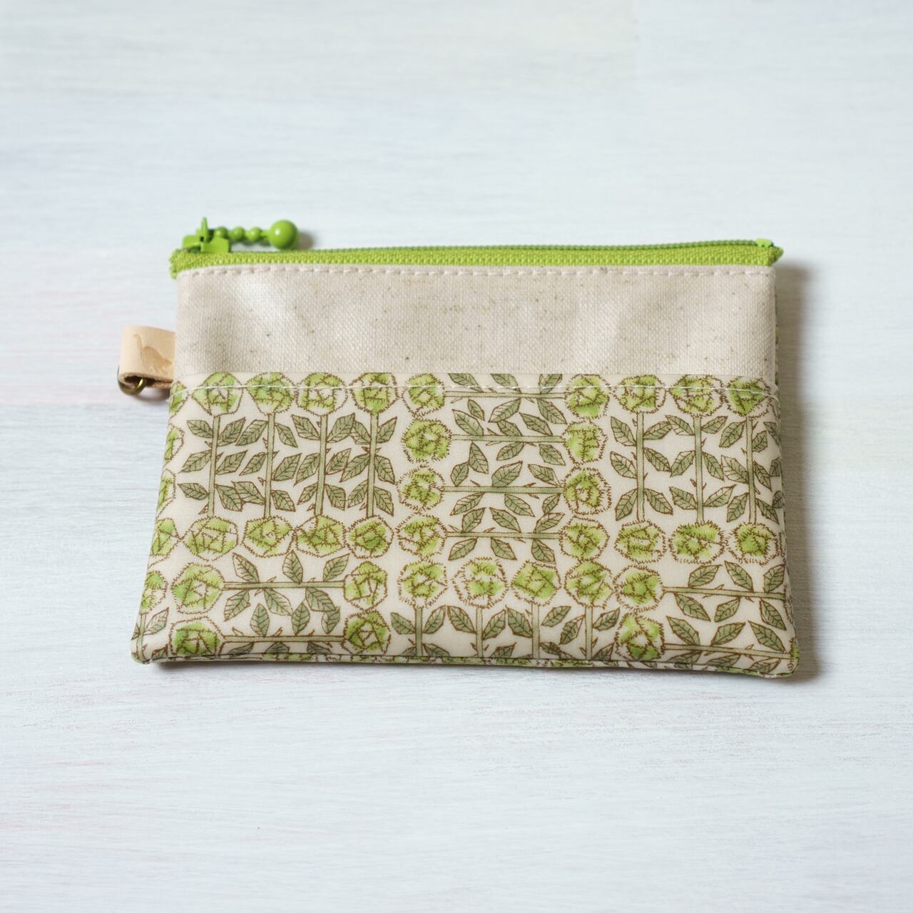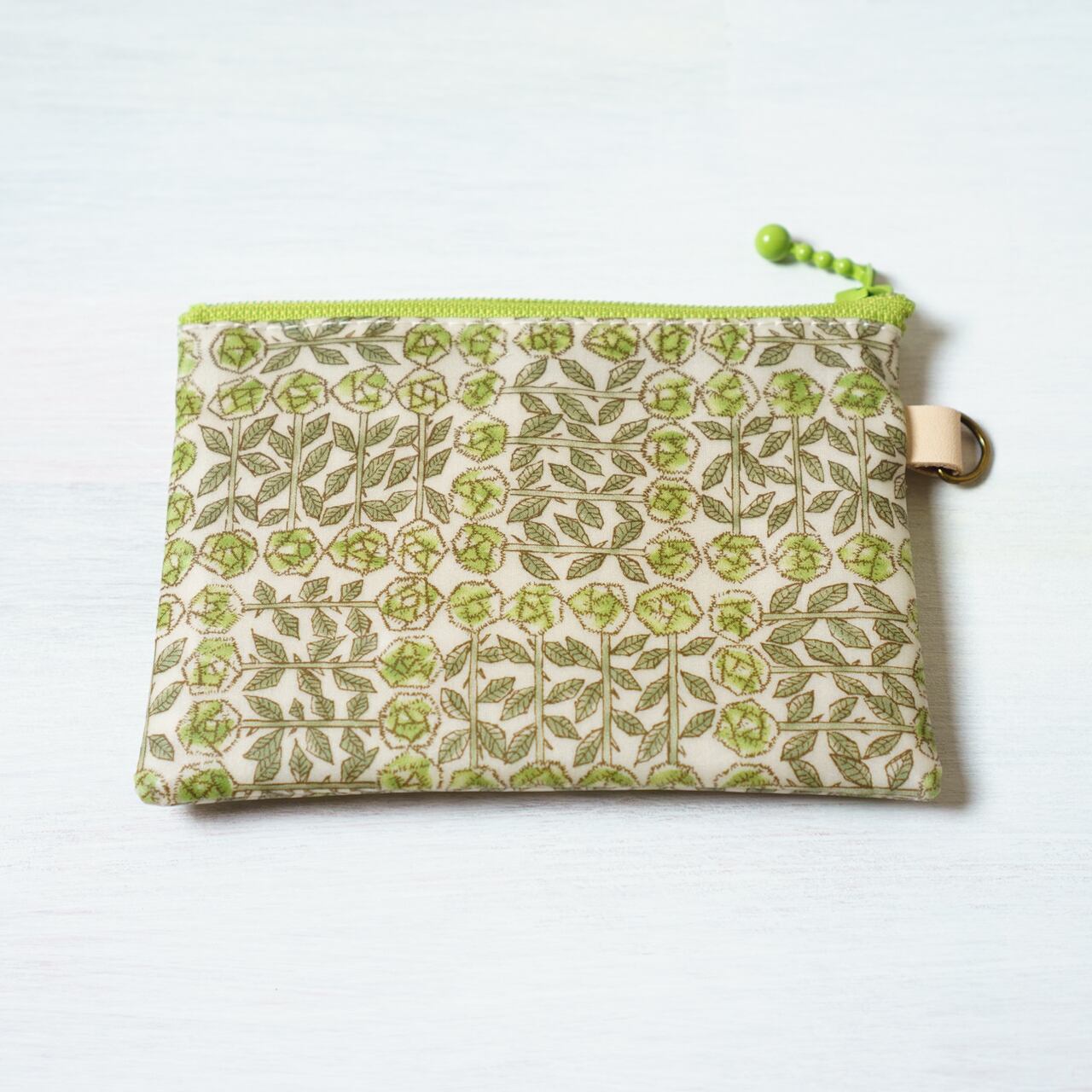 カードポーチ Sleeping Rose(スリーピング・ローズ) グリーン リバティラミネート生地