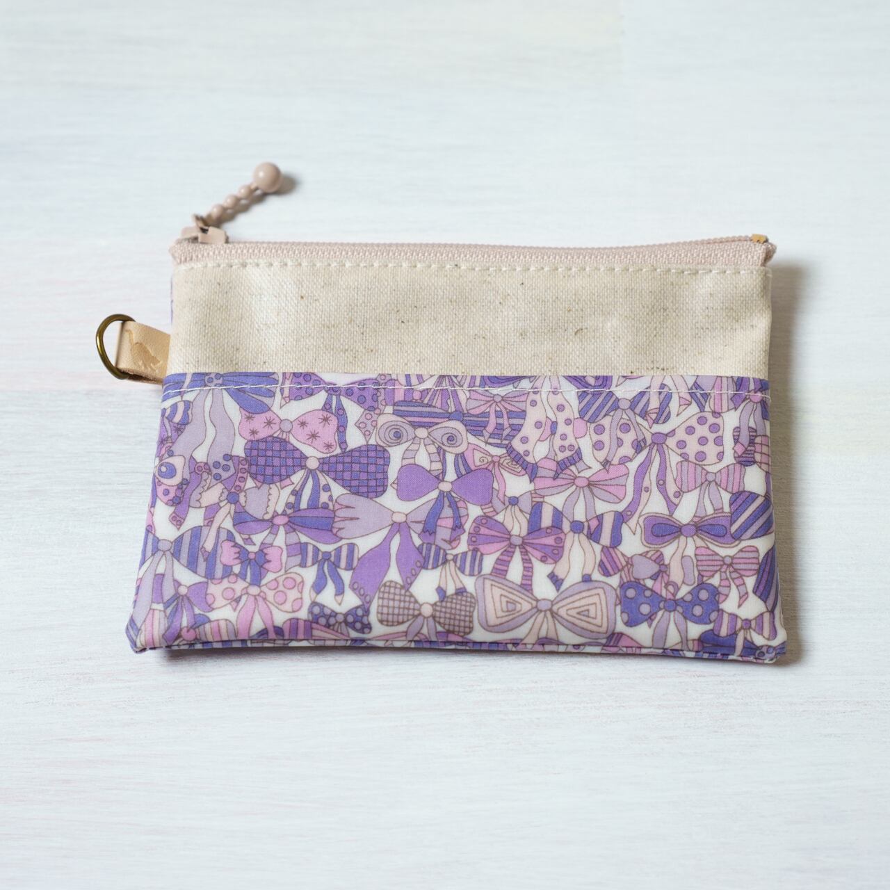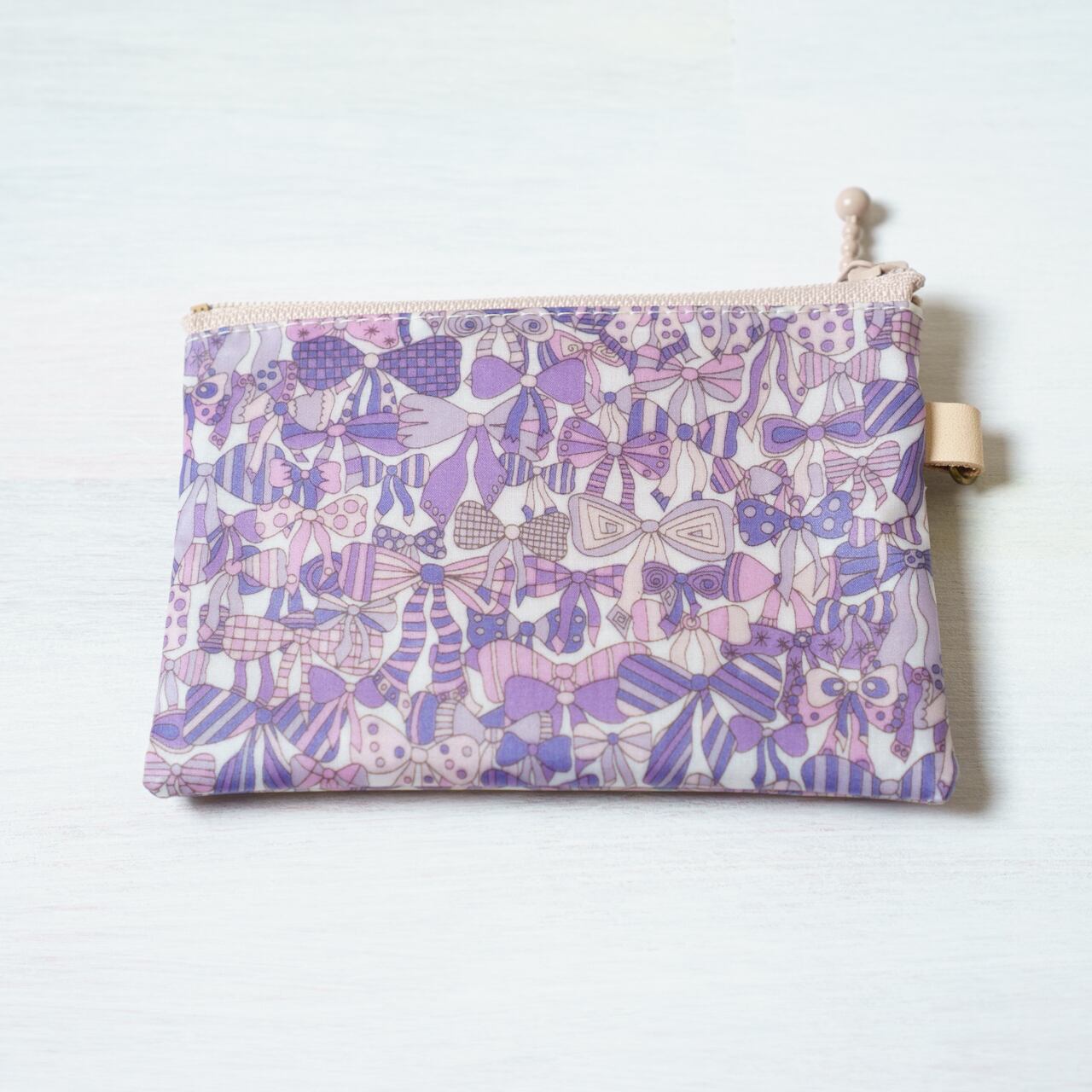 カードポーチ Jenny’s ribbons(ジェニーズ・リボンズ) パープル リバティラミネート生地