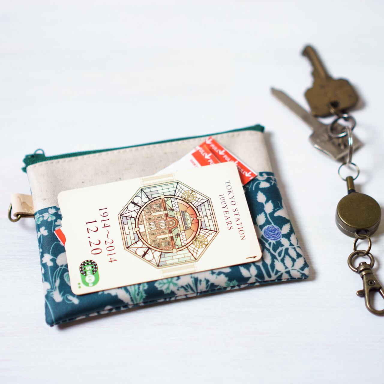 カードポーチ Yoshie(ヨシエ) グリーン リバティラミネート生地