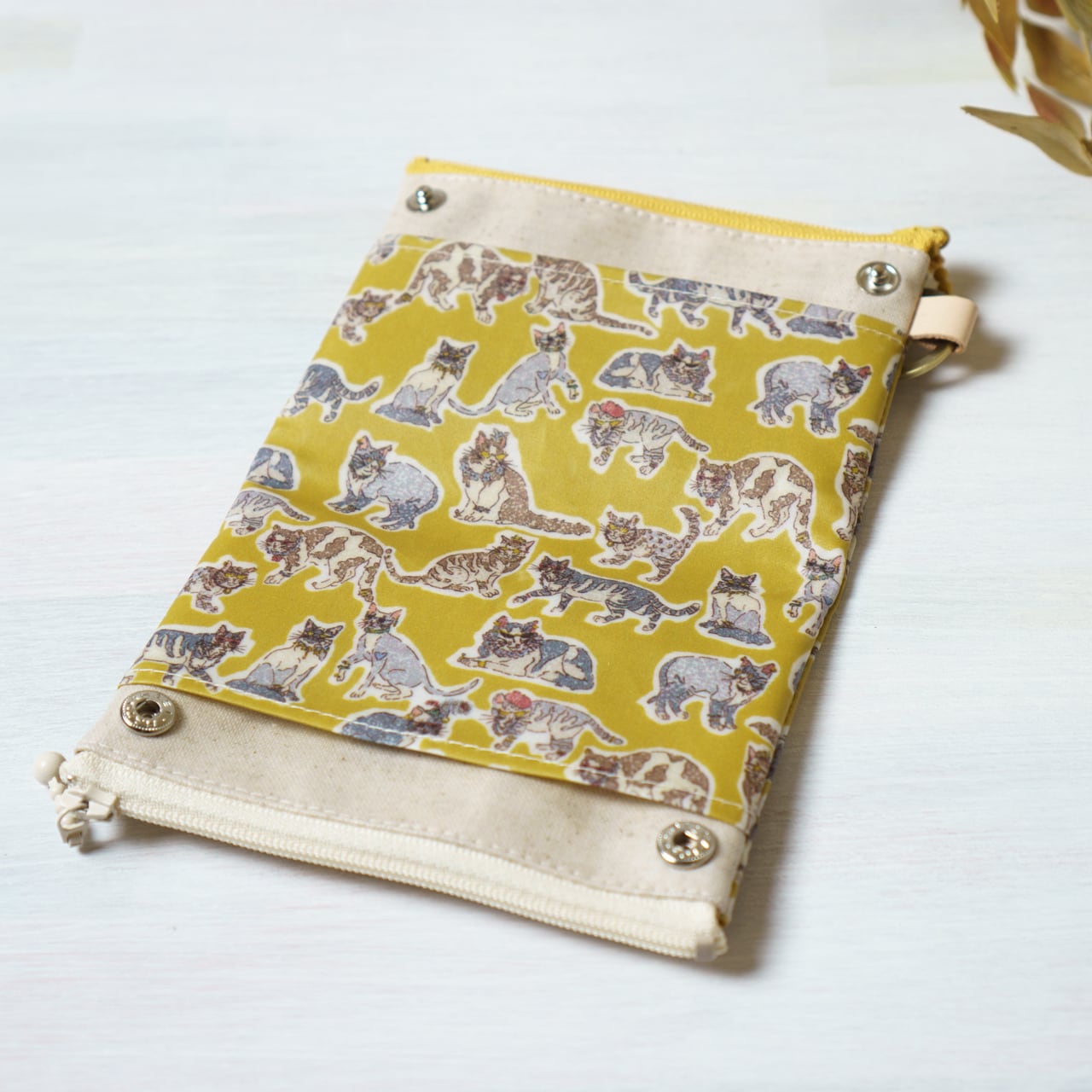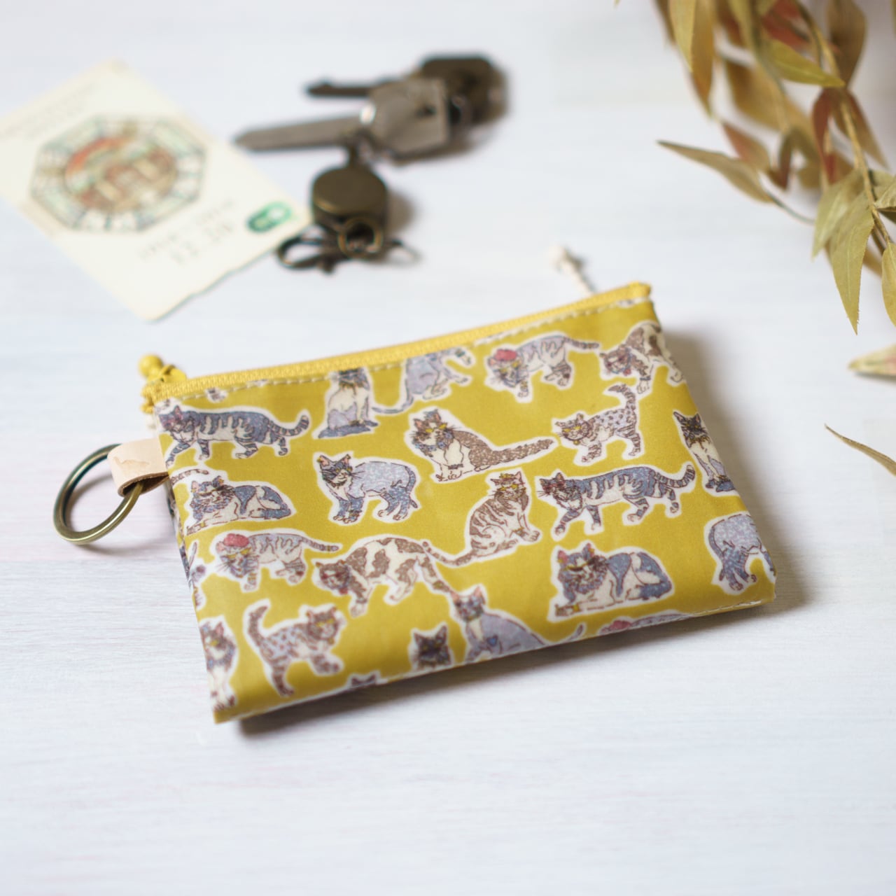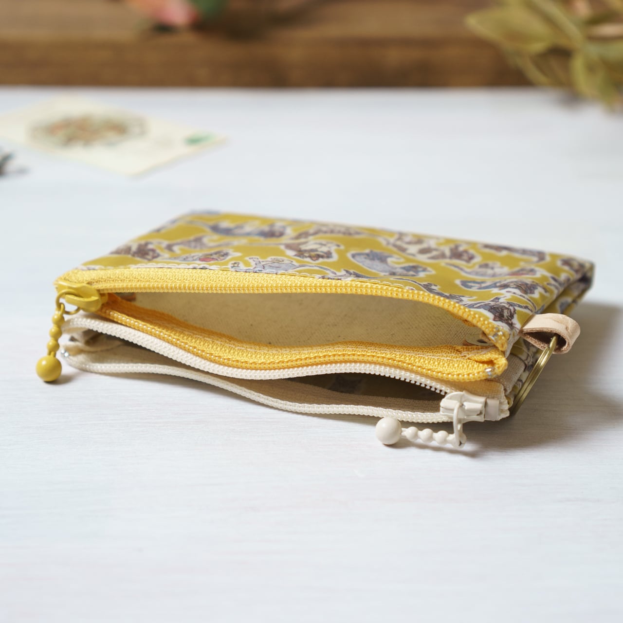 ダブルカードポーチ Willoughby Mews (ウィロビー・ミューズ)ミモザ リバティラミネート生地