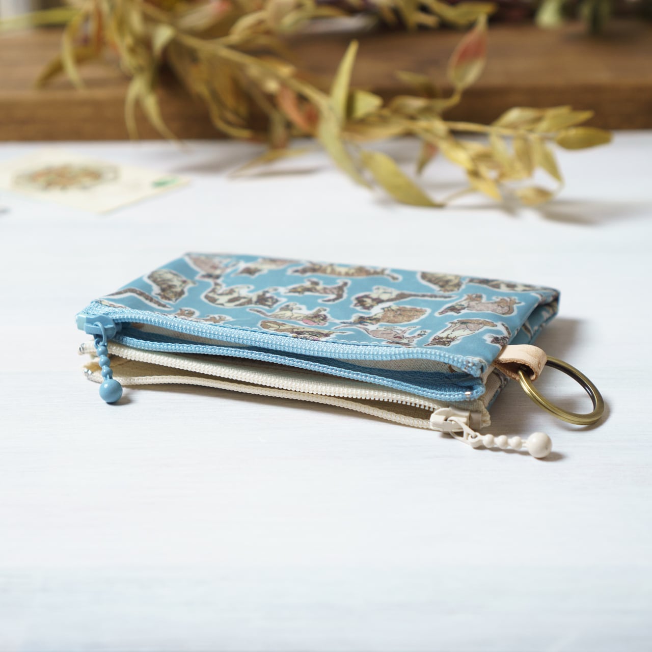 ダブルカードポーチ Willoughby Mews (ウィロビー・ミューズ)ラムネ リバティラミネート生地