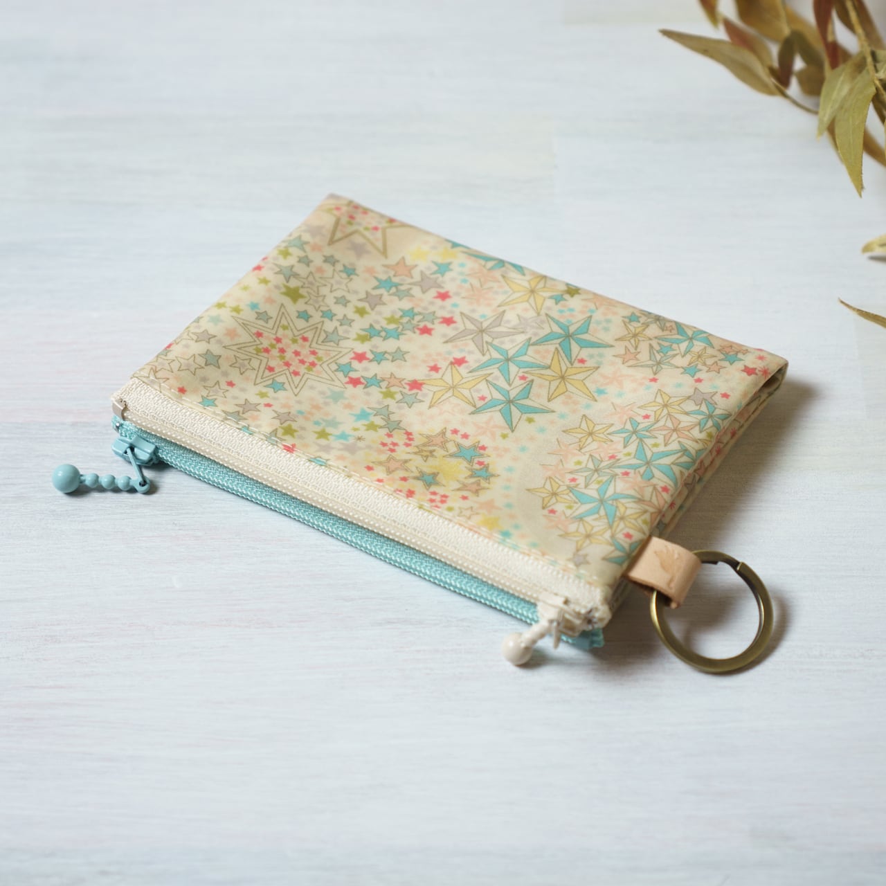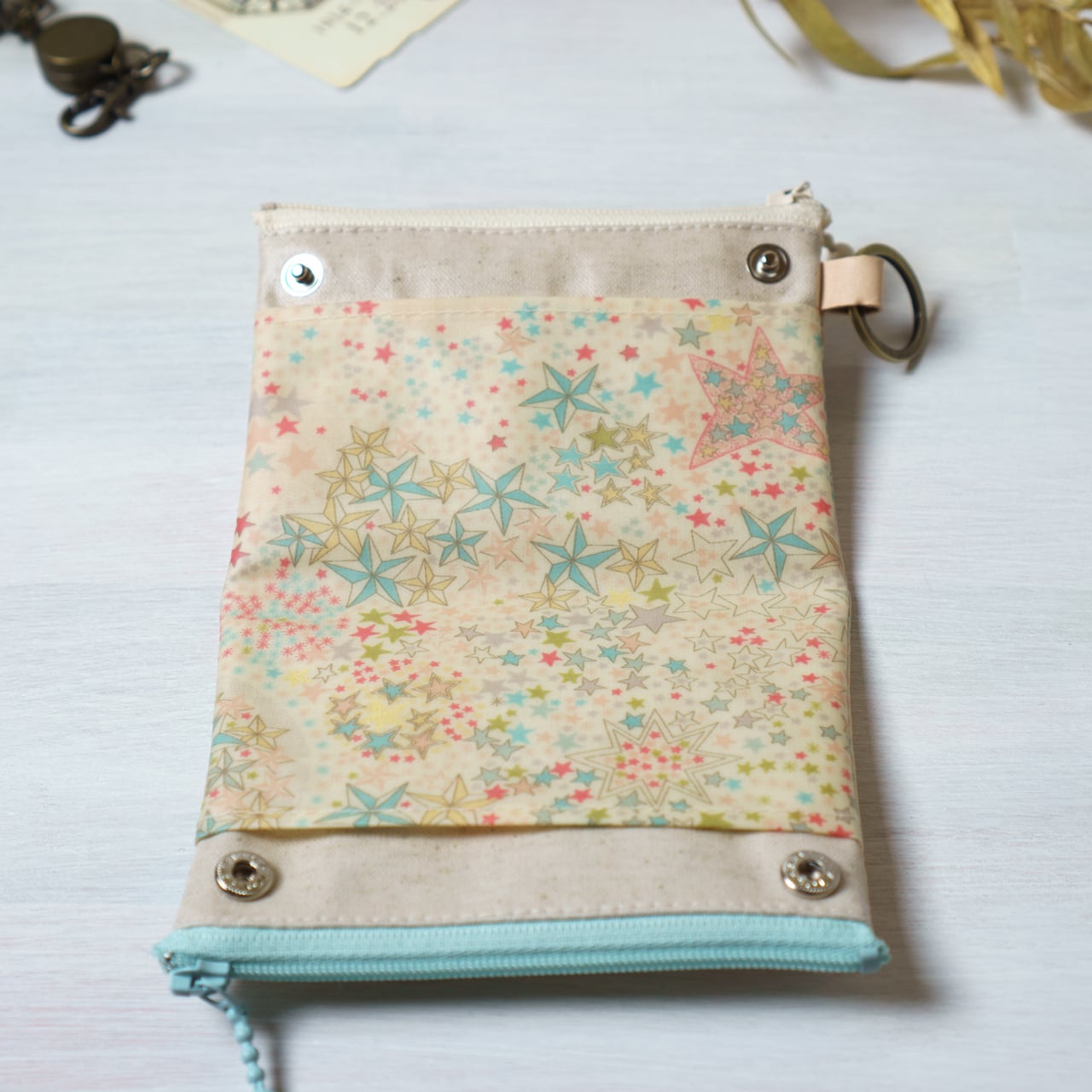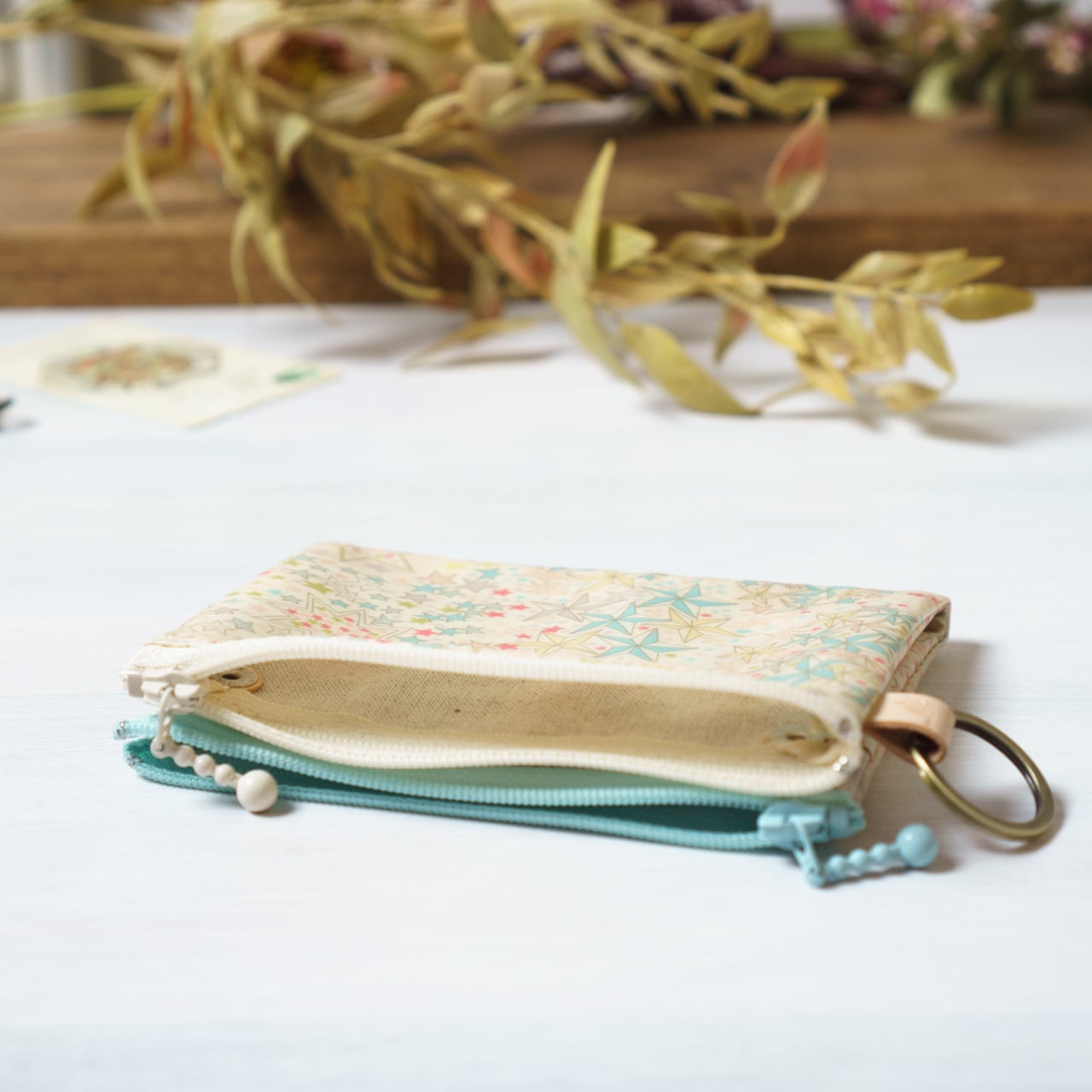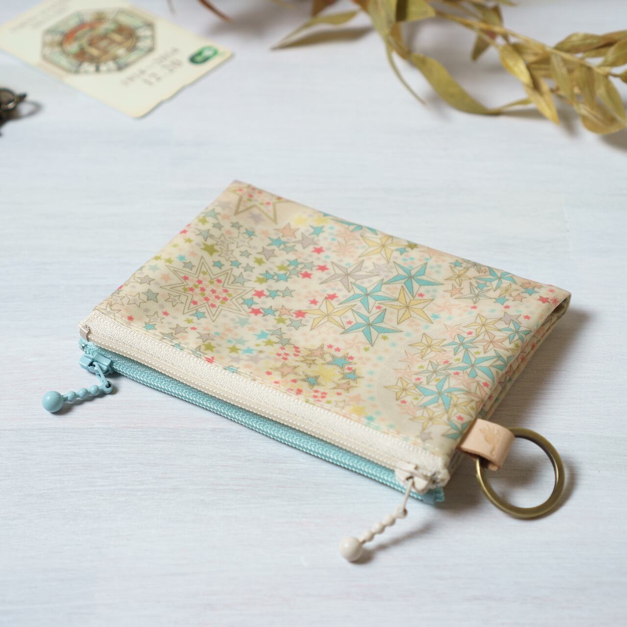 azure blueで定番のカードポーチをダブルにしたバージョン