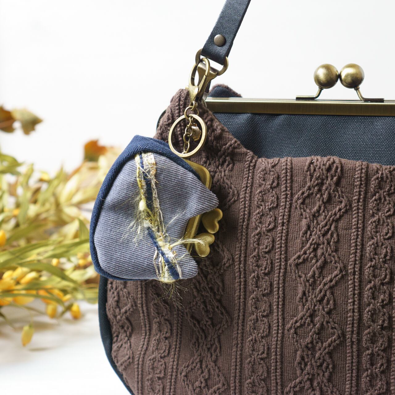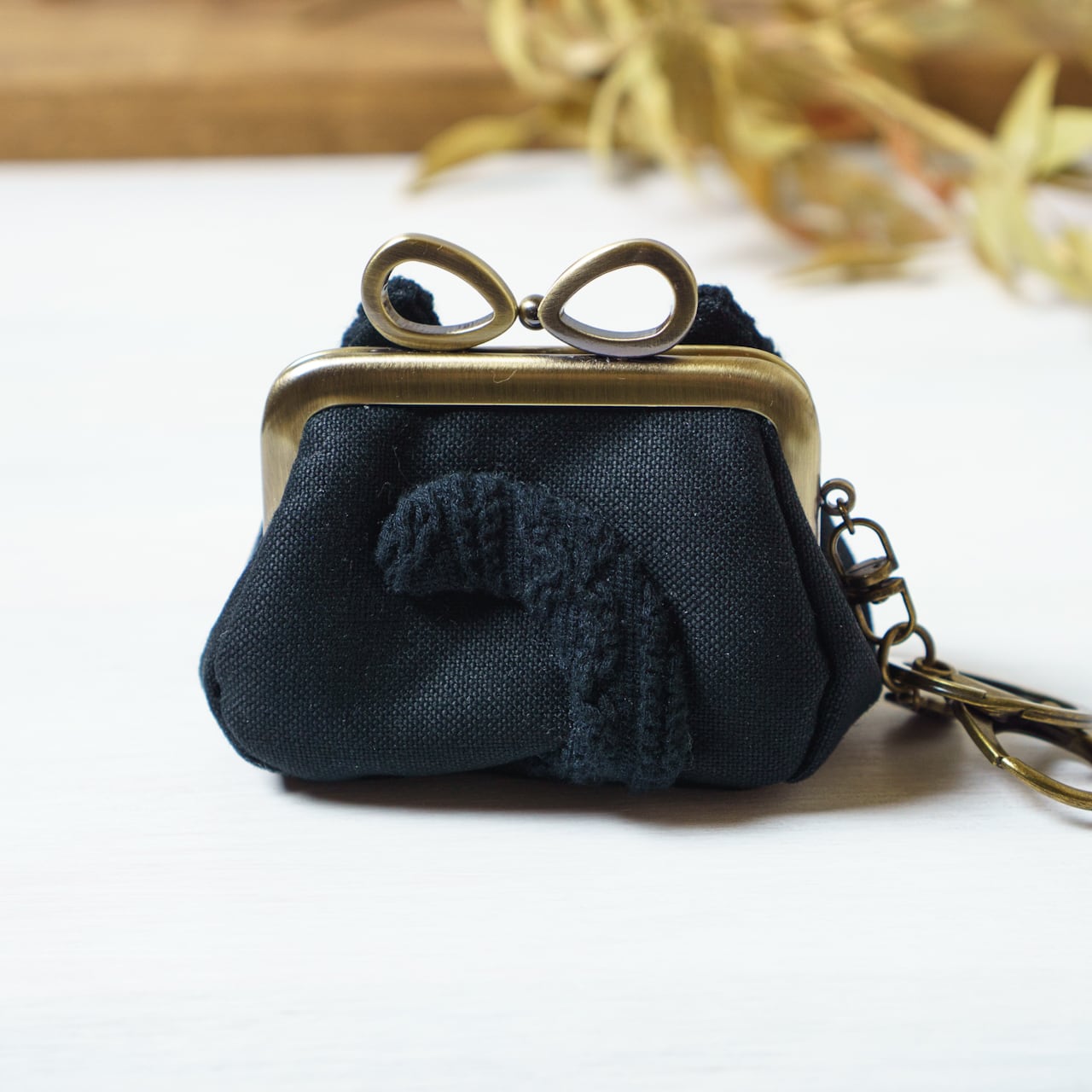 ・リボン型のがま口金で猫あおりバッグの雰囲気を