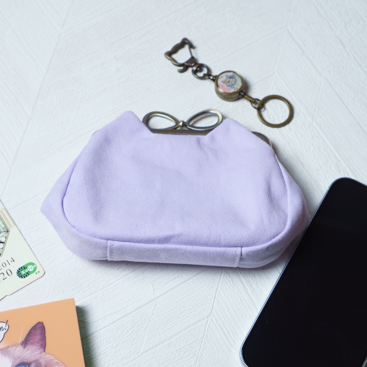 猫耳の大きな外ポケットが特徴の財布
