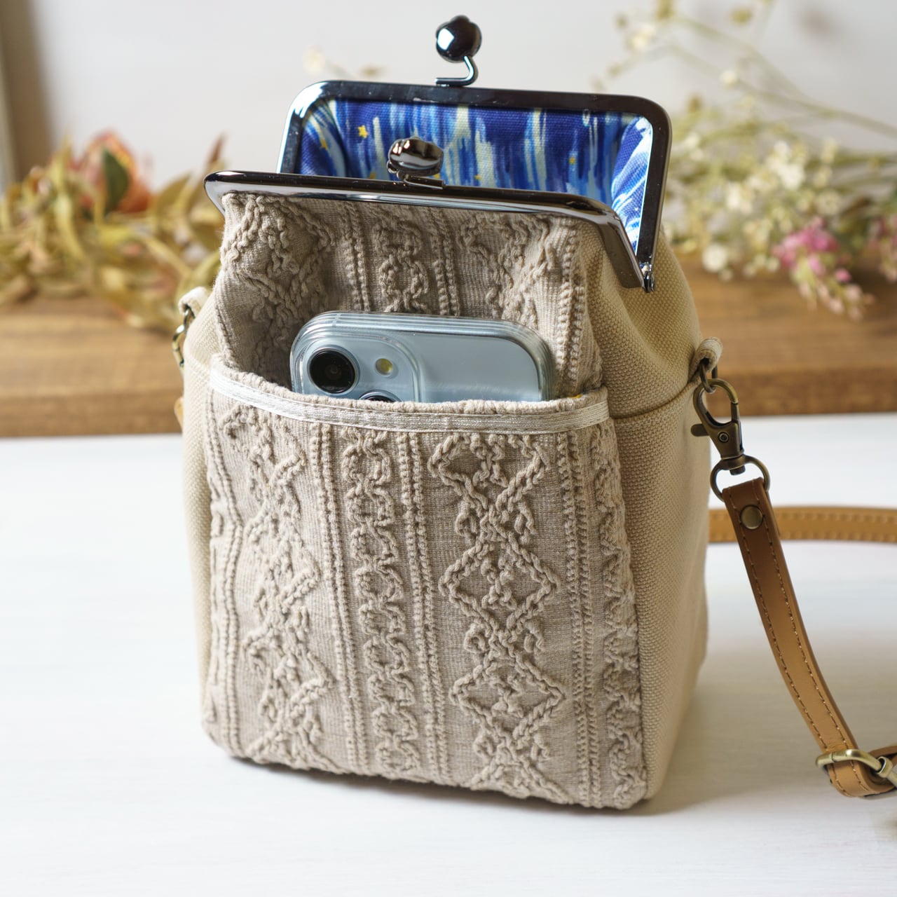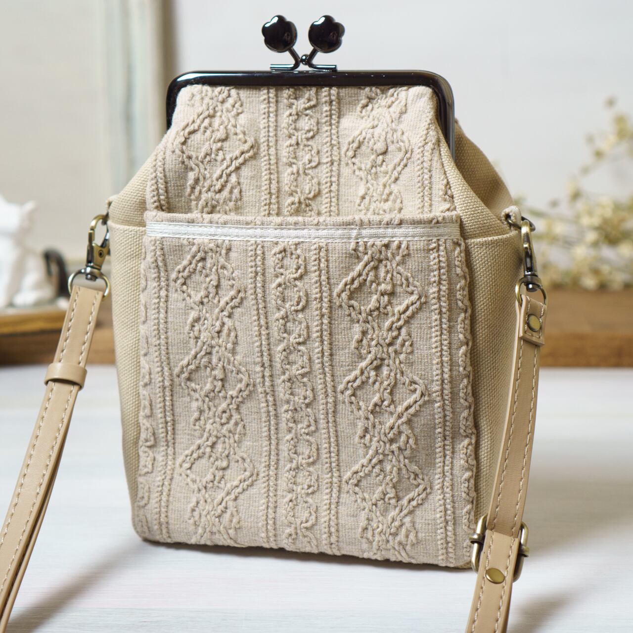 内側はオリジナル生地、外側は編み模様生地と帆布を組み合わせています。
