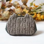 がま口の外側に猫の顔シルエットのポケットがあります。