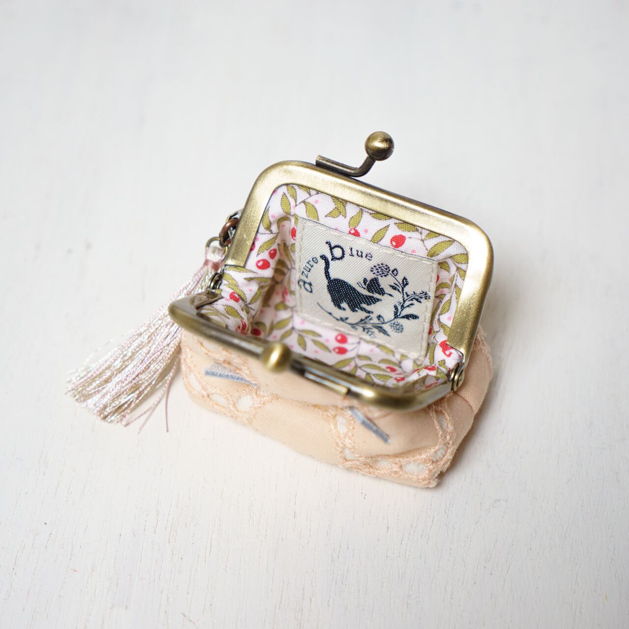タッセルもがま口本体に合わせピンク、シルバーなどの糸を使いタッセルチャームに仕上げました。