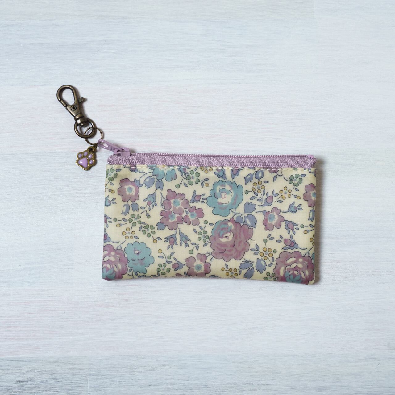 裏地なし、ファスナーあり、肉球チャーム付き