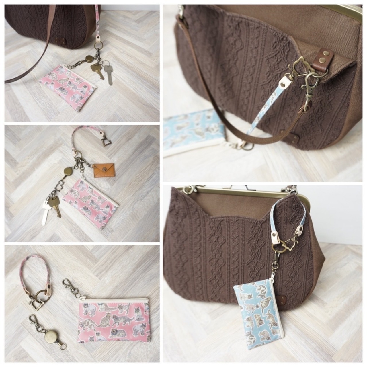 ナスカンやDカン付きのポーチやパスケース、鍵などをつけて