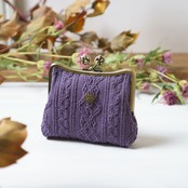 可愛い「猫+肉球のがま口金」と立体感のある「編み模様生地」で『猫大好き』なポーチに仕上げました。